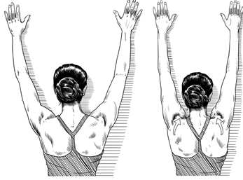 팔을 들어 올릴 때 어깨가 들썩이면 안 됩니다