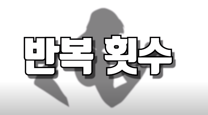 트레이닝의 반복 횟수는 목적에 따라 달라지는데 근력증가는 1~5회 반복, 근비대는 8~12회 반복, 근지구력은 15회 이상의 반복 횟수로 알려져 있습니다